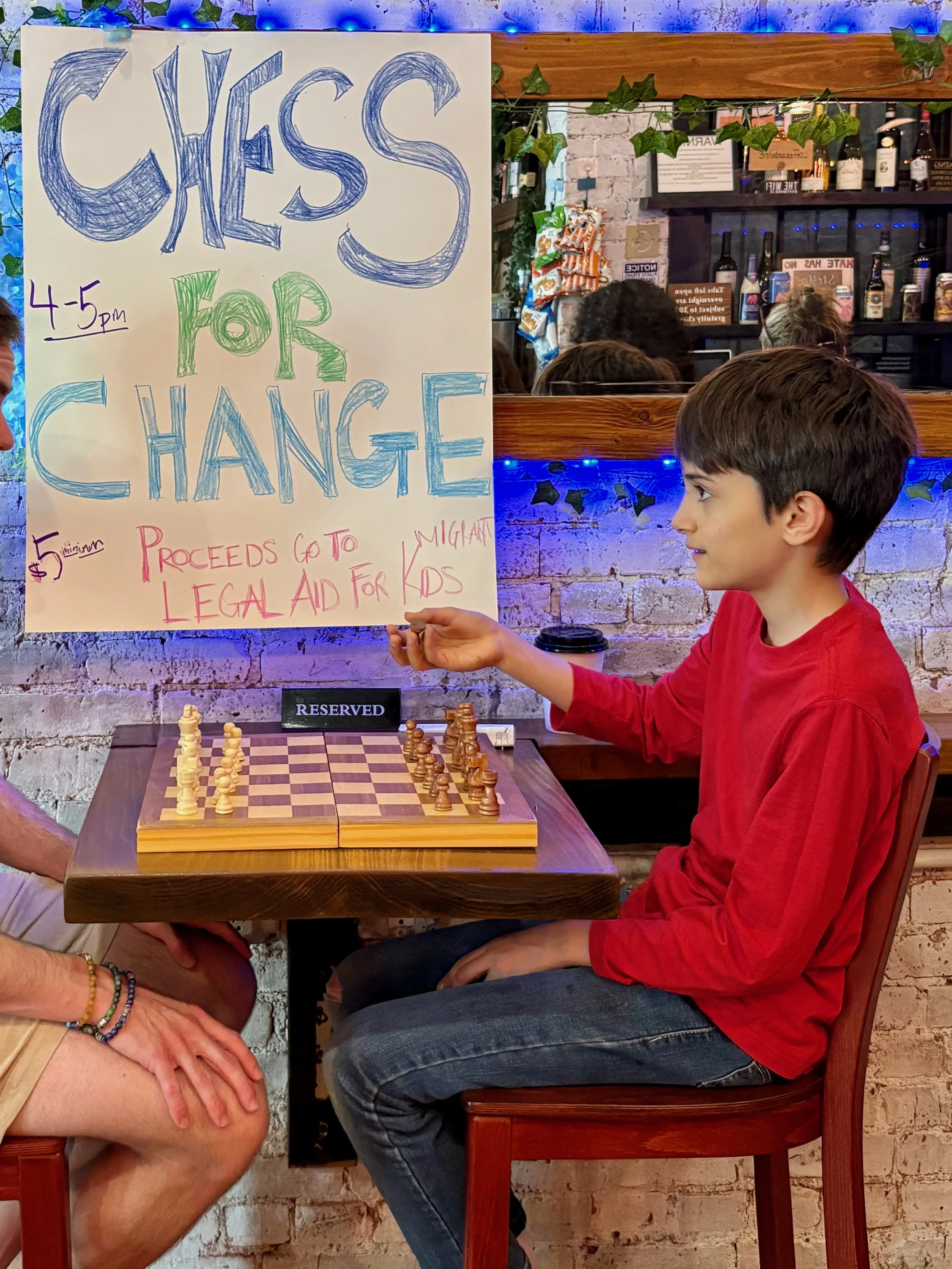Alex (11)Shop: CHESS FOR CHANGE Selling: Chess games and vouchers for chess lessons. Bio: Alex is an 11-year-old rising 6th grader who loves lego, math, chess, running, political history and chatting with interesting people. Chosen Charity: Kids In Need of Defense (KIND) because he thinks it's unfair for small children who don't speak English to appear in deportation hearings without an advocate in the form of a lawyer.
